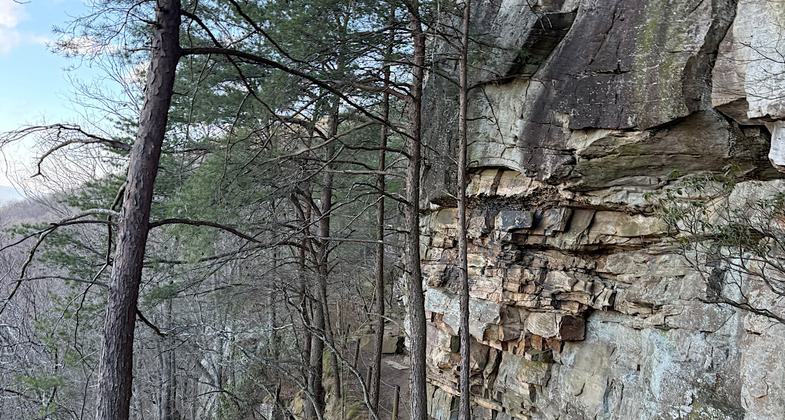 The trail traverses a bluff overlooking Lookout Creek in Georgia and Tennessee.