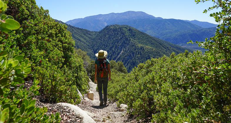 The trail then becomes a single track over relatively flat terrain for the first half mile through a beautiful grove of young Sequoia trees, White Fir, Sugar, and Jeffery pines. From there the trail starts to steeply descend into a sunny and exposed canyon offering spectacular views of Snow Valley to the West and the San Bernadino peaks to the southeast. Continue descending amongst Coulter pines and canyon live oak until reaching a resting point overlooking Bear Creek. Here the trail becomes rough to travel on as vegetation tends to overgrow the trail. After your first view of Bear Creek the trail then clears up as you hike down through incense cedar and Douglas firs to Siberia Creek where you find alder trees and a few box elders. Anglers, bring a fishing rod as the creek offers good fishing opportunities. After spending an hour or two by the creek begin the steep ascent back up 2,300 feet to Snow Valley.