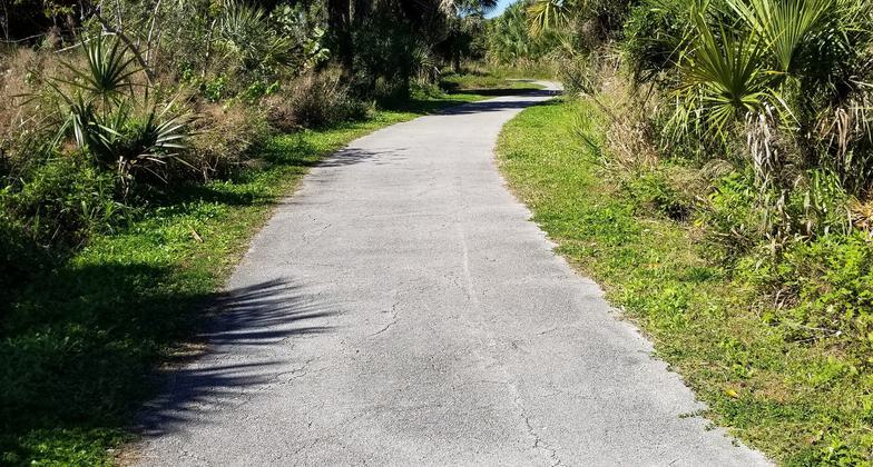 The Centennial Trail, located in Pelican Island National Wildlife Refuge, is a 0.75-mile trail that begins as asphalt and, when reaching the water’s edge, continues as a boardwalk/bridge of molded plastic. The molded plastic planks used to construct the deck of the boardwalk have the names of all US National Wildlife Refuges and the year they were established. When you get to the end of the Centennial Trail, you’ll see the plank for Pelican Island NWR, established in 1903. The trail is short and, because of its construction, can accommodate strollers or wheelchairs. The trail is an out and back. The observation platform at trail’s end provides views Pelican Island and the Indian River Lagoon. Pelican Island NWR has several other trails. While there I also hiked the Joe Michael Memorial Trail which is more of a marshland-type trail common in this part of Florida. The Wildlife Refuge does not have a visitor center. It does, however, have a flush-toilet restroom.