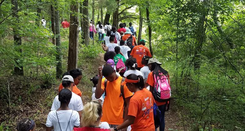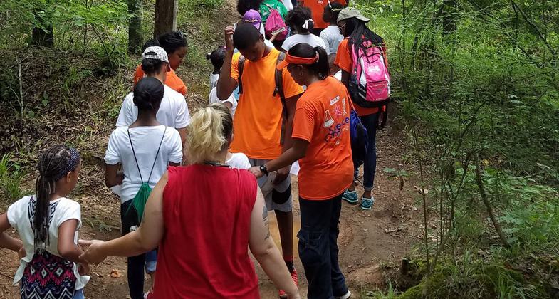 Guided hike to the waterfall. Photo by Tasha Simon.