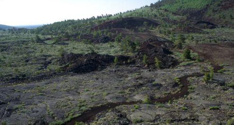 About 2000 years ago large chunks of the North Crater cinder cone were broken off and rafted to this spot. Subsequent cinder eruptions and plant growth have transformed the area into a volcanic garden. In springtime, the wildflower displays here are glorious with carpets of dwarf monkeyflowers covering the ground. Early morning or evening visits provide the best opportunities for photography and wildlife observation.