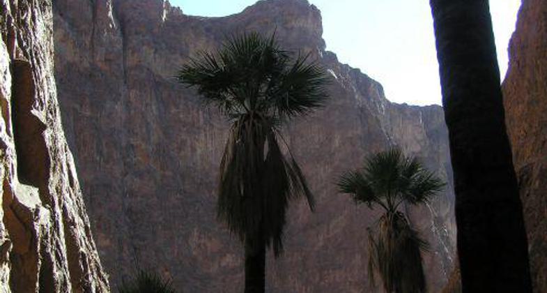 An area of rugged beauty. Palm Canyon may be the only place in Arizona where native palm trees and California Fan Palms can be found.