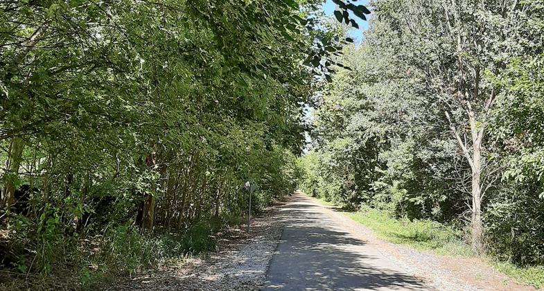21 mile Asphalt trail along old Pennsylvania (Pan Handle) Rail Road, Through small Indiana towns, Corn, Soybean farm land at the Wabash Valley.