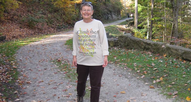 A short walk across the Southside Bridge from downtown Charleston, WV leads to the Sunrise Carriage Trail, a meandering 0.65 gravel trail that rises gently through a beautiful forest. The Trail is a welcome respite, offering a walker a cool breeze, abundant bird song, numerous varieties of wildflowers, and fragrant and flowering shrubs and trees. Huge cut stones serve as benches and offer places to rest. There are two noteworthy monuments. The first is a short distance from the Justice Row entrance and reads: "In the second year of the Civil War, two women convicted as spies by drumhead court martial were brought to this spot, shot, and here buried. In 1905 when building this road to Sunrise, their remains were disinterred and reburied opposite this stone." Further up the trail is a shrine erected by former Governor William A. MacCorkle in memory of his daughter, Isabelle. A statue of a compassionate figure with outstretched arms belongs in the shrine's niche and will be restored in the future. The Carriage Trail is one small part of an extensive trail system linking nearly all neighborhoods in the City of Charleston.