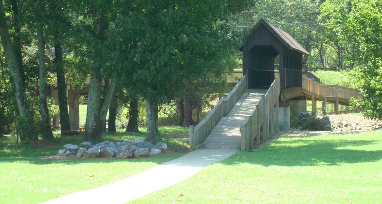 The trail has two trailheads: one on US 72 to the south and one at the City's Sportsplex to the north. Beginning at the northern trailhead, the trail meanders through an open greenspace that makes up a portion of the Frisbee golf course. The trail then crosses Swan Creek on a restored covered bridge. After paralleling Swan Creek for approximately 1/3 of a mile, the trail turns west toward the high school, where it crosses a large wetland area on an elevated boardwalk for a full 1/10 of a mile.