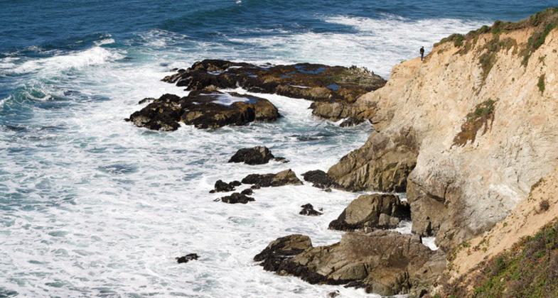 Please stay on the main trail and away from the cliff tops. Bluffs along the California coast are inherently unstable. They are prone to crumbling and sliding, especially in wet weather. It is very dangerous to climb or walk along the edge of cliffs.