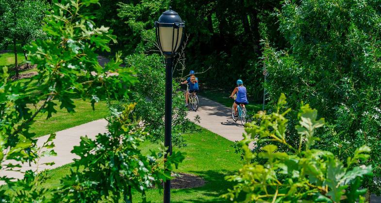 The McKinney park system was constructed along Wilson Creek, so the trail system winds through several significant community parks, such as the Grady Littlejohn Softball & Baseball Complex, Towne Lake Park, Alex Clark Memorial Disc Golf Course, Al Ruschhaupt Soccer Complex, and Bonnie Wenk Community Park. The breadth of the trail allows hikers and bikers to take a scenic journey to one of the many amenities on the trail. Along the Wilson Creek Trail, McKinney offers a wide variety of traditional recreation activities, as well as unique recreation opportunities such as disc golf, sand volleyball, lacrosse, cricket, horseshoes, fishing, and kayaking. Visitors can also enjoy amenities such as pavilions, play structures, picnic tables, grills, restrooms, a splash pad, an all-abilities playground, an outdoor fitness court, and a dog park. The Recreation Center at Towne Lake is also on the trail system and hosts basketball, pickleball, racquetball, ping pong, billiards, and a plethora of recreational offerings. The collection of leisure and entertainment cannot minify the natural beauty that surrounds the entirety of the trail, such as lakes, ponds, native Blackland Prairie foliage, open green spaces, and colorful crape myrtles lovingly beautified both by the City of McKinney and volunteers from the McKinney Parks Foundation.