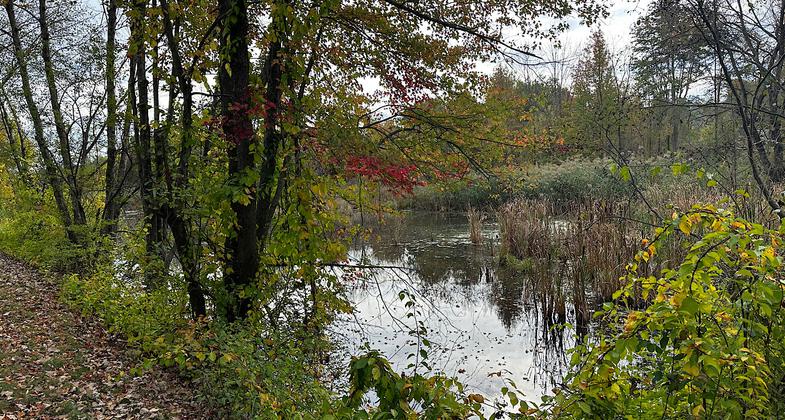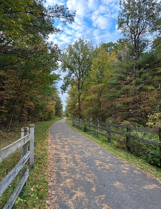 Hiked October 10, 2023. From Ballston Spa to Mechanicville, the path takes the wanderer through forests and along waterways, avoiding commercial areas and crossing residential streets until one arrives at Mechanicville, where a busy train depot and an off-limits golf course await. It was a lovely walk, especially with the falling leaves and beautiful colors. An unexpected bonus – though I had mentally prepared to double back and make the day a 20+-mile excursion, I easily found an Uber to take me back to my car after I arrived in Mechanicville.